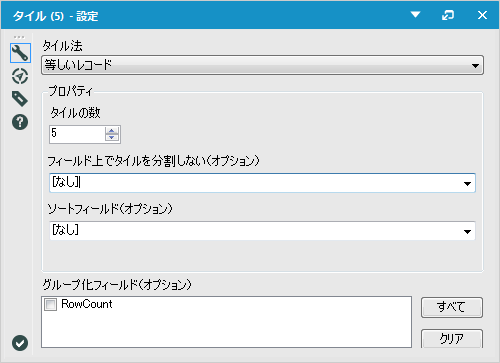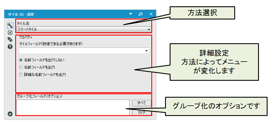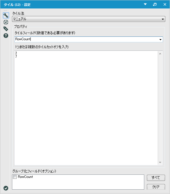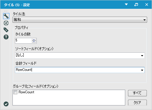 | タイル数 | グループ分けを行うグループ数になります。 |