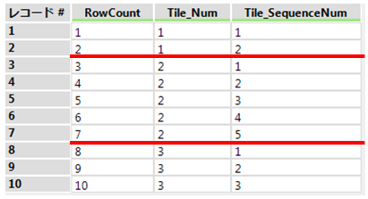 RowCountが2と7で「Tile_Num」が変更されてる事が分かります。