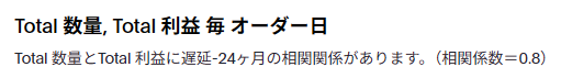 相互相関は、時間方向にずらして相関を見るため、ずらした時に相関があれば、そのズレを「XXヶ月」、ずらさなくても相関がある場合「遅延なし」といった形で表現してくれます。