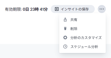 右上にあるメニューにて「インサイトの保存」もできますが、それ以外に以下のことが可能です。