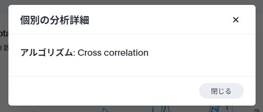 分析詳細については、アルゴリズムが共通して「Cross correlation」としか出ないので、相互相関分析ではあまり使うことはないかと思います。