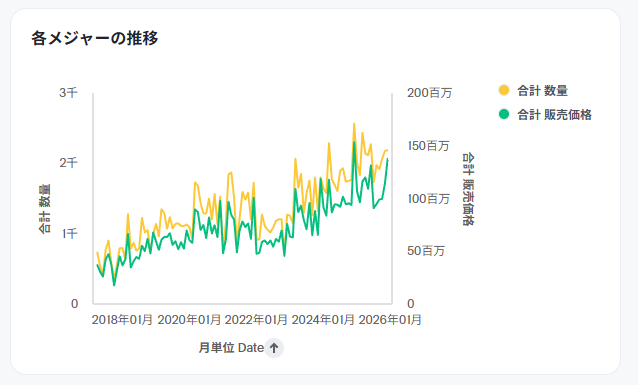 なお、日付項目ではない属性データのみでも一応結果を出すことは可能です(その場合、「列の選択」で選択する属性項目が対象となります)。