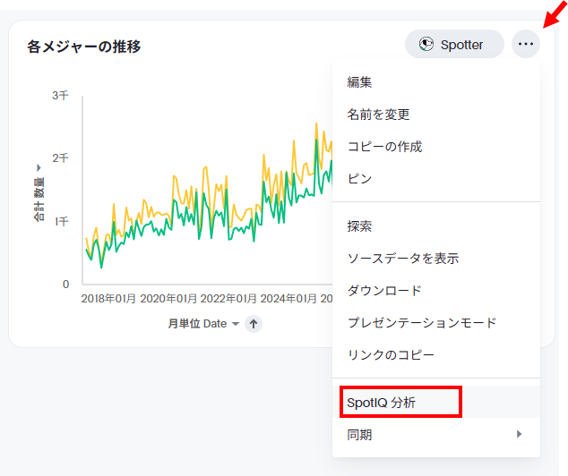 3点メニューから「SpotIQ分析」を選択します。