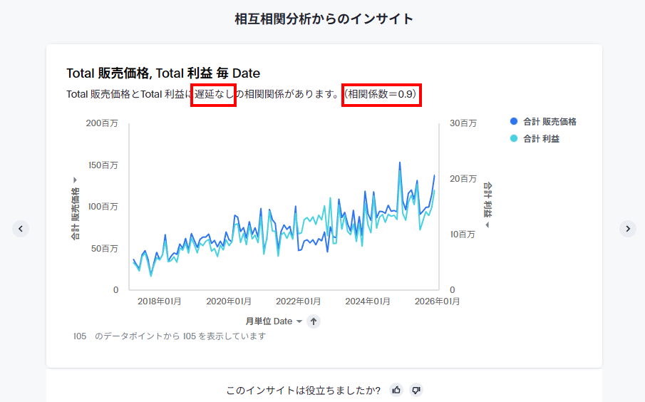これで分析を実行すると、以下のようなインサイトが得られます。