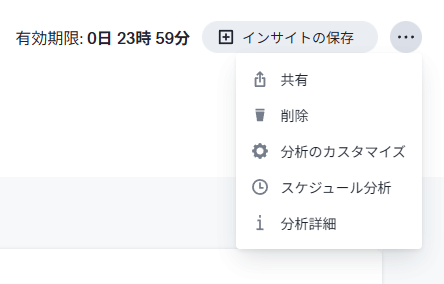 右上にあるメニューにて「インサイトの保存」もできますが、それ以外に以下のことが可能です。