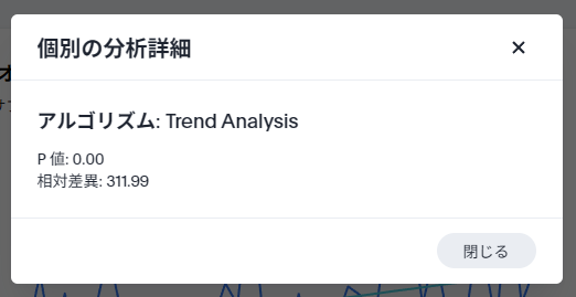 上のメニューの分析の詳細については、以下のようにどのアルゴリズムで作成されたのか、その時のパラメータがどうだったのかを確認することができます。