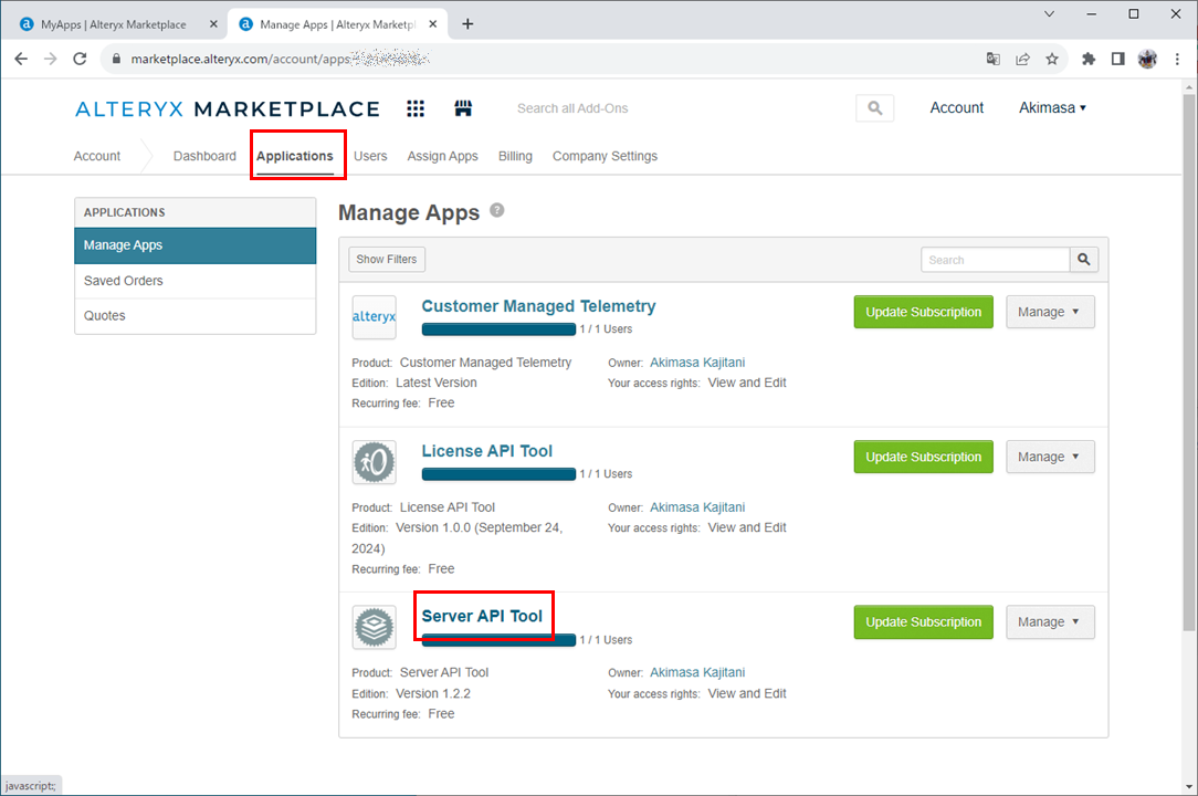 - Alteryx社によって検証されたツール等が購入できるのがMarketplaceです