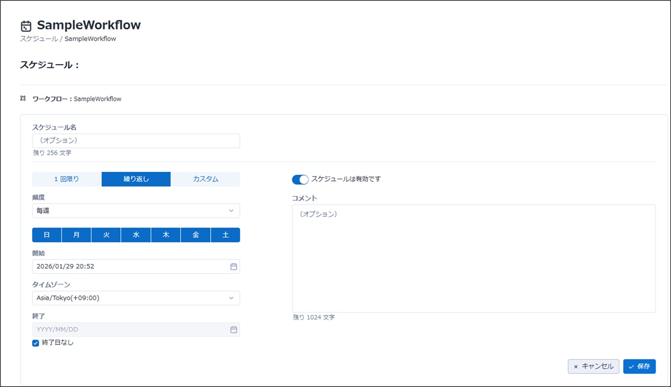 今回はワークフローのスケジュール実行についてです。