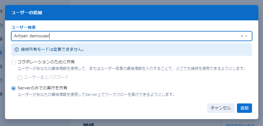 ここで、「Serverのみでの実行を共有」であれば、Gelleryやスケジューラーで実行する際に共有した資格情報を共有されたユーザーが使うことができるようになります。
