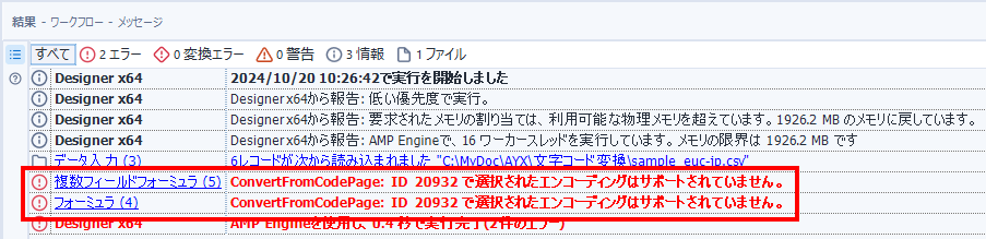 結論としては、Alteryxでは先程紹介した表にない文字コードはサポートしていない、ということになります。
