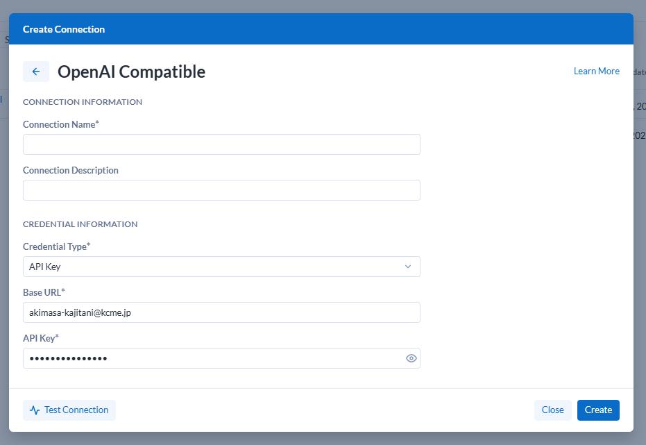 OpenAI Compatibleは通常のOpen AIの設定に加えてBase URLの追加が必要となります。