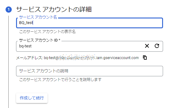 次に、サービスアカウントの詳細を指定していきます。まずは、名称です。名称を入力すれば、自動的にサービスアカウントIDは決定されます(自分で入力も可能です)。