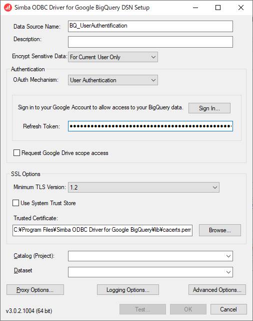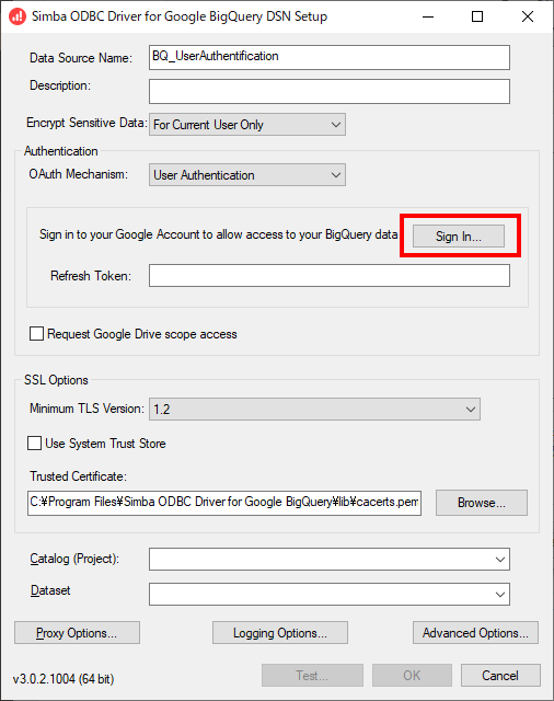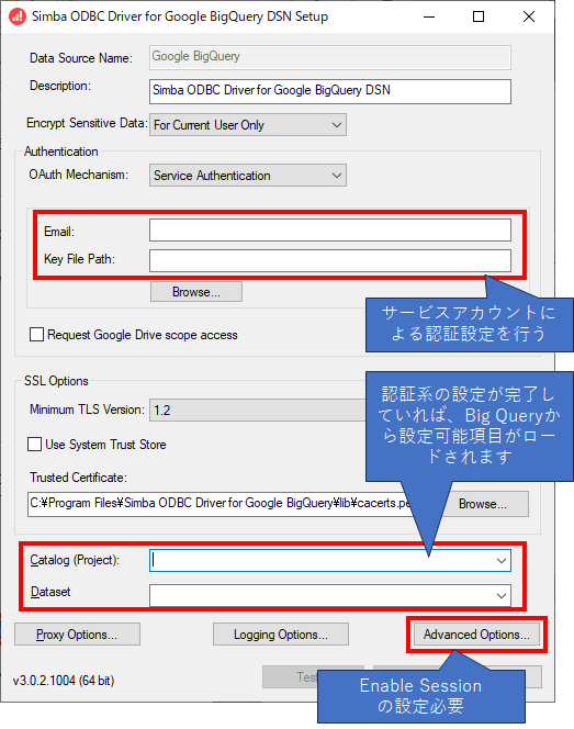 AlteryxでGoogleのBig QueryにODBCドライバで接続する際のODBCドライバの設定方法について解説します
