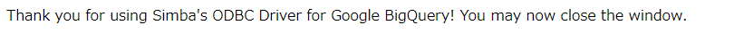 あとは、ブラウザの画面を閉じて、ODBCドライバの設定画面に戻りましょう。