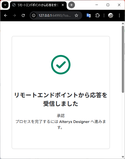 問題なくログインができれば、以下のように「承認」画面がでます。これが出ればブラウザのウィンドウを閉じてDesignerに戻ってください。