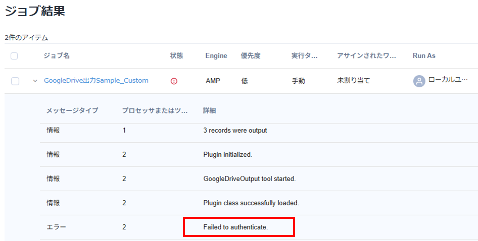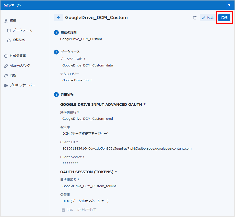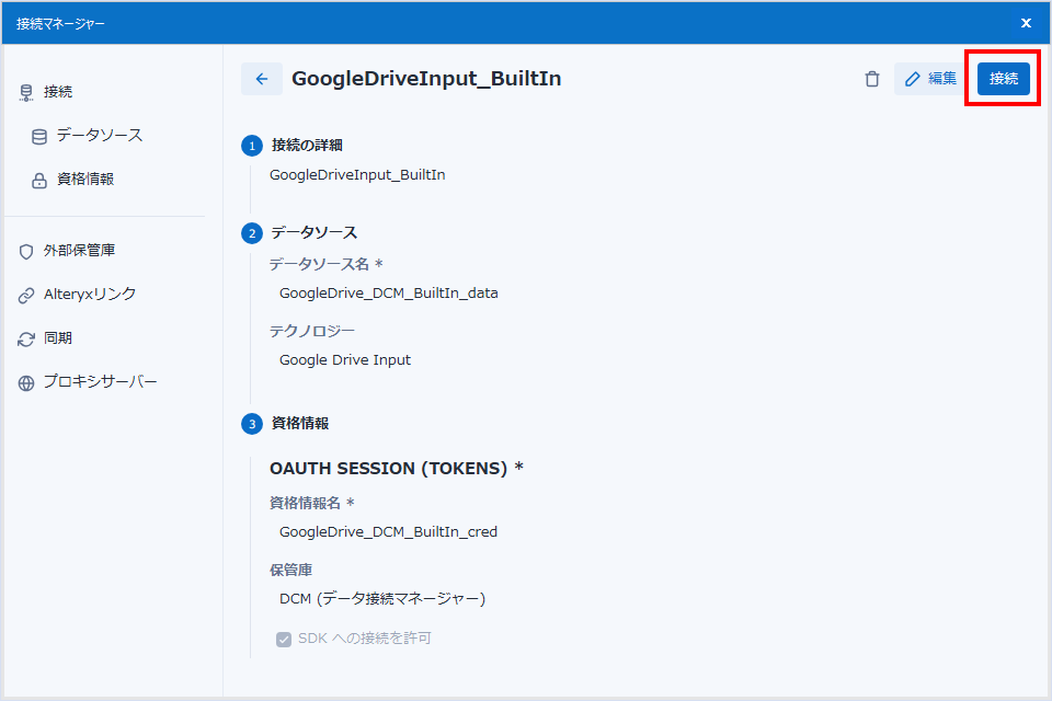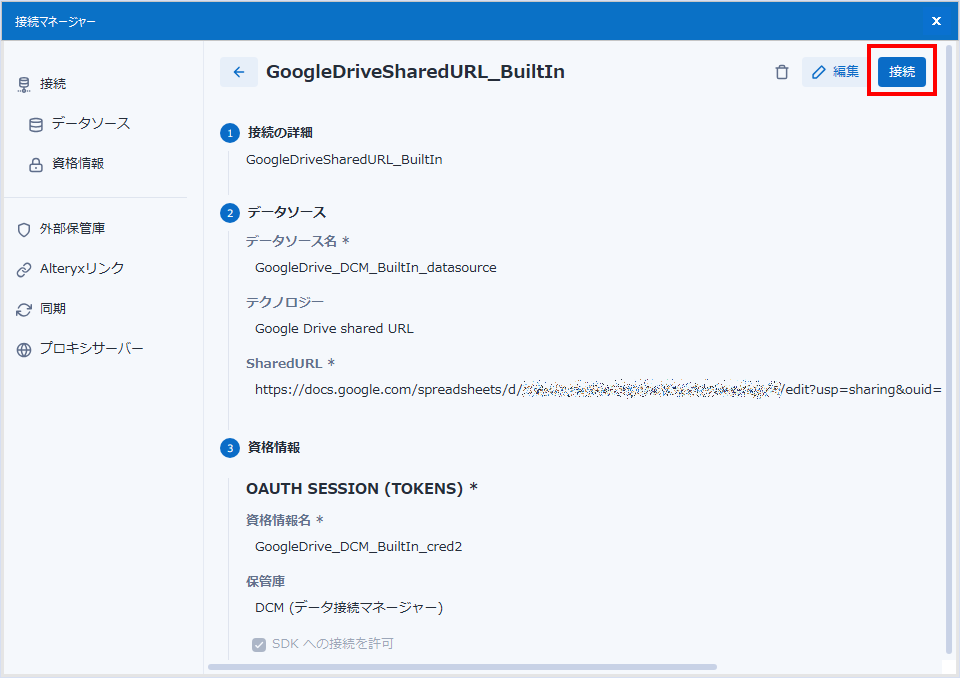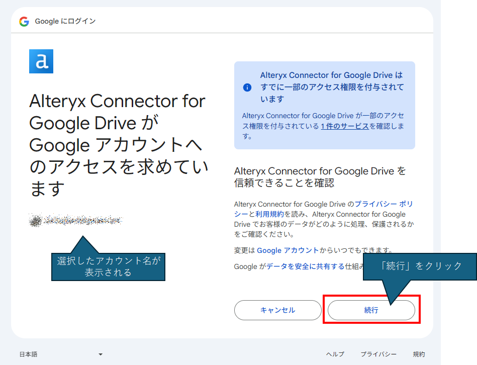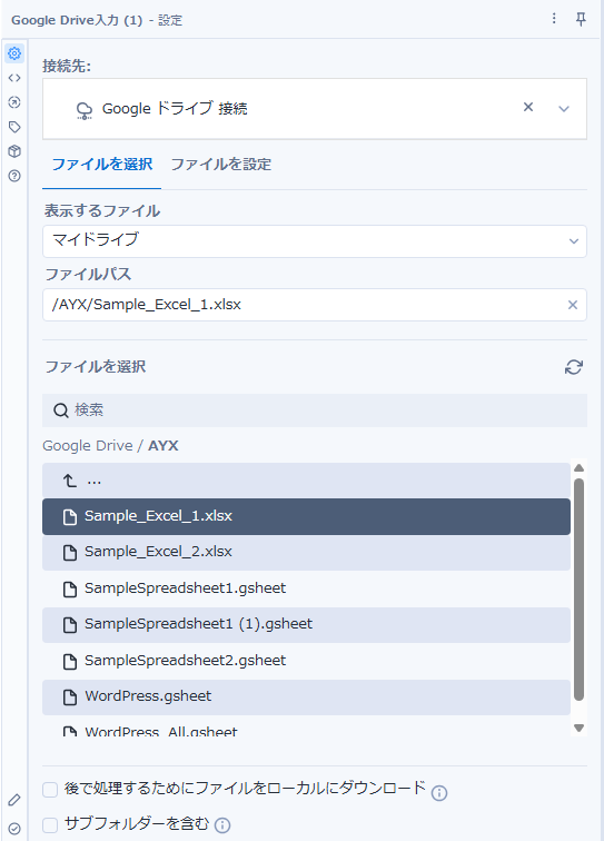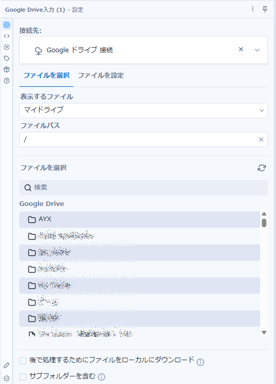 なお、この方法は「Alteryx One Google Driveコネクタ」のprivate接続の場合うまくいきません。