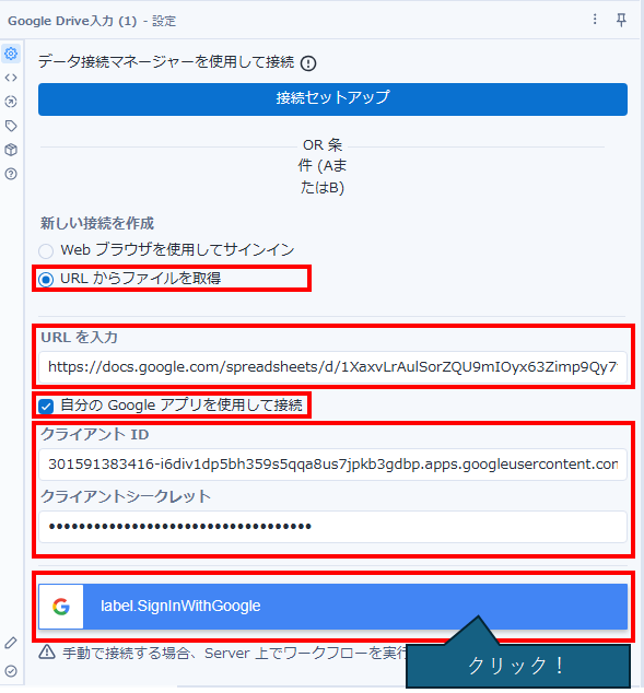 - URLからファイルを取得+自分のGoogleアプリを使用して接続