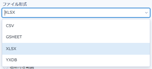 ファイル形式としては、以下の形式(XLSX、CSV、GSHEET、YXDB)に対応しています。