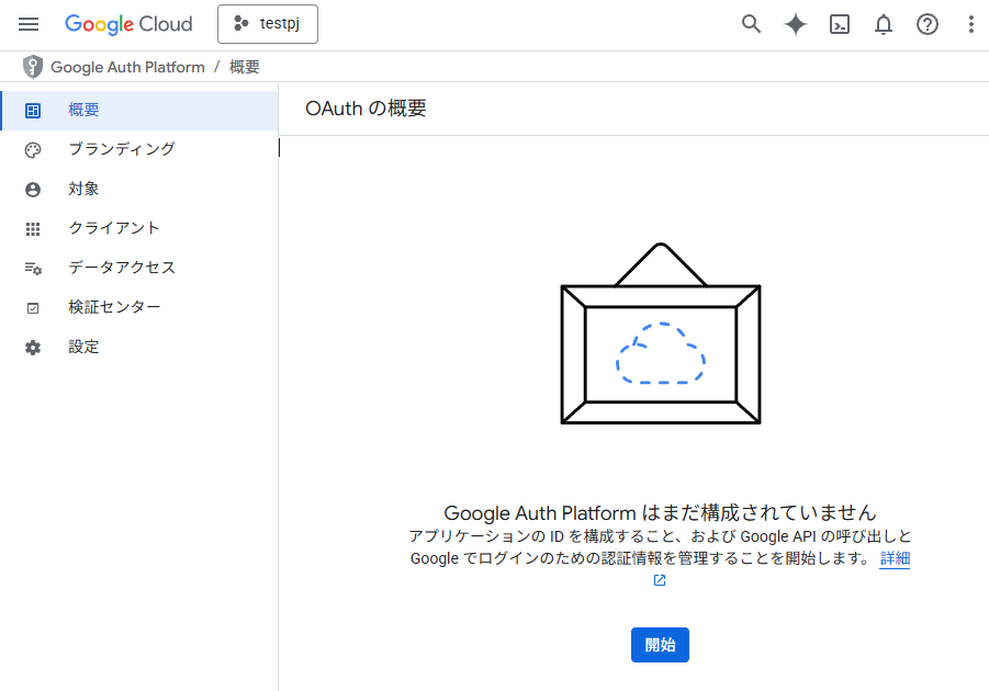 作成されていない場合は、画面右側にある「開始」ボタンをクリックします。