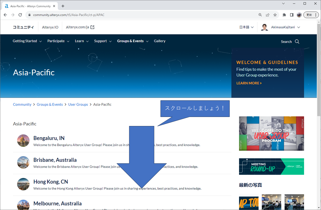 これにより、Asia-Pacificのユーザーグループのページに飛ぶので、ここから下にスクロールしましょう。