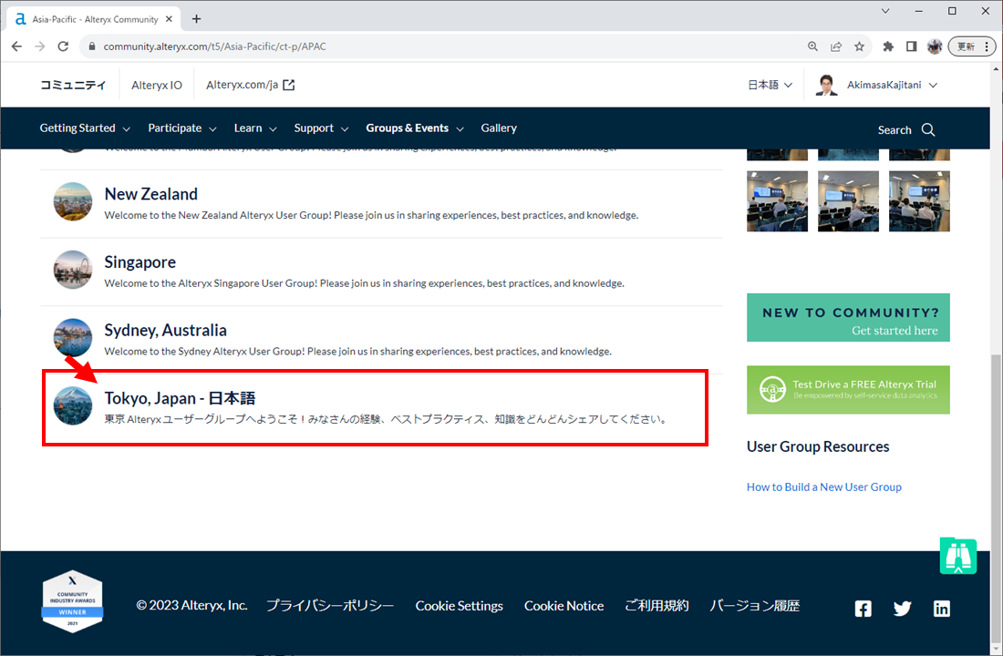 日本のAlteryxユーザーグループは現在東京のみとなっておりますので、日本在住の方は「東京Alteryxユーザーグループ」に積極的にご参加いただければと思います。