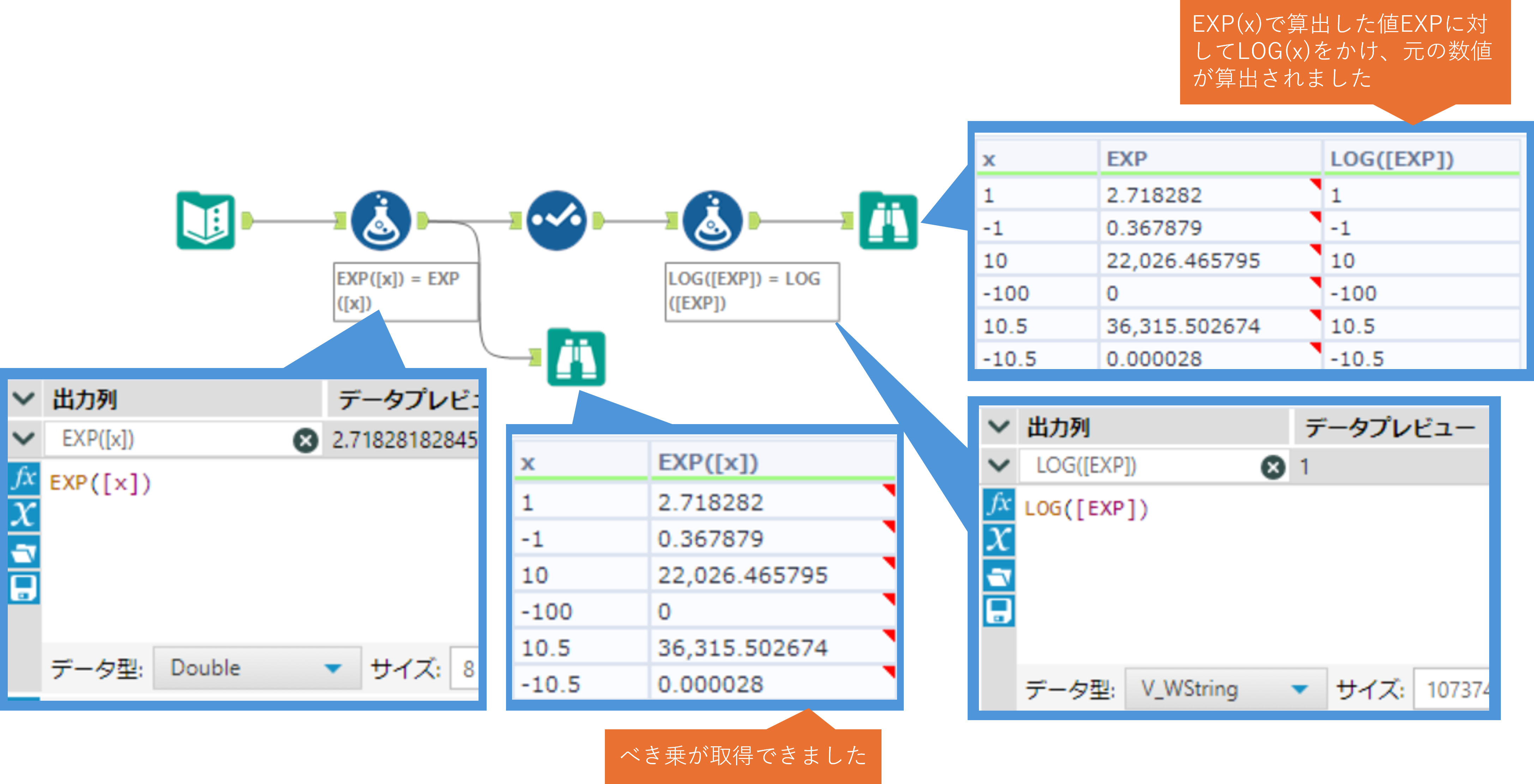 EXP / LOG / LOG10 ・・・ 自然対数、常用対数を取得します