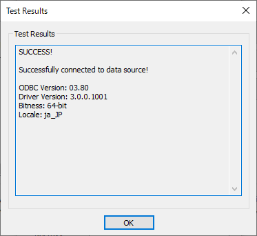 - Data Soure:データソース名。ODBCドライバの「ODBCデータソースアドミニストレータ(64ビット)」で表示される名称です。必須項目。