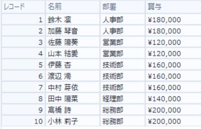 そうすると、部署ごとに賞与データを出力することができます。