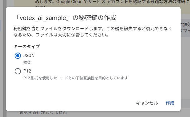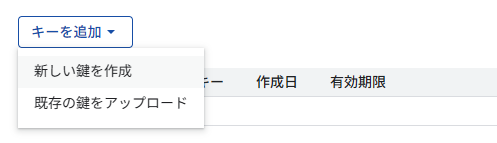 「キーを追加」をクリックします。「新しい鍵を作成」をクリックします。