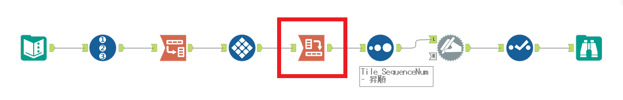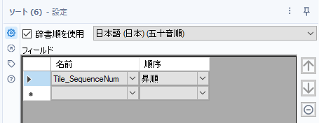 ソートツールを使い、タイルツールでナンバリングした「Tile_SequenceNum」を基準にソートし、順序を整えます。