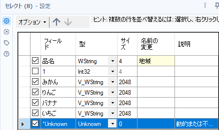 そこで、フィールド名を含め、完全な行列転置を行うワークフローを作ってみました。