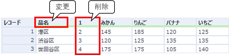 また完全に転置したため、「品名」がフィールド名になってしまいました。