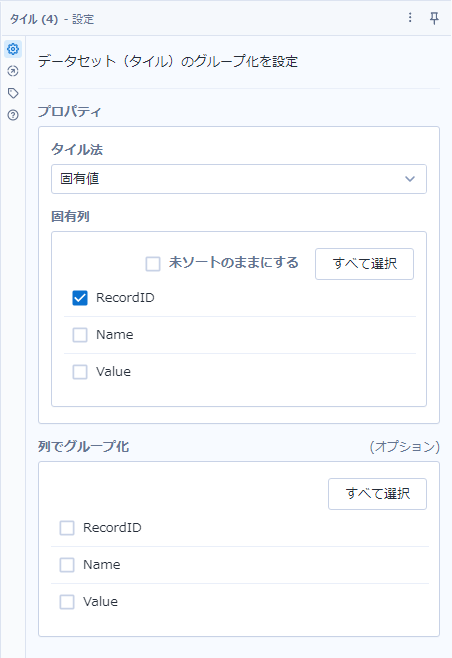 次にタイルツールを使ってRecordIDを基準に転置後の列順序をナンバリングします。