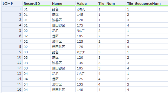 レコードの並びがバラバラになってしまっていますが、今回はTile_SequenceNumで順番を保管しているため、これを使って並び順を修正できます。
