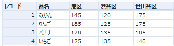 縦軸が商品名で横軸が地域、内容が価格というデータです。