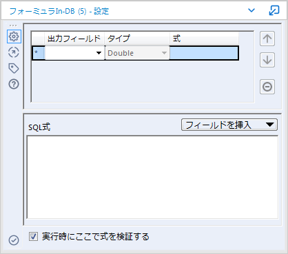 チェックがある場合は、SQL式がフォーミュラツール内で検証されるため、フォーミュラツール上にエラーが表示されます。