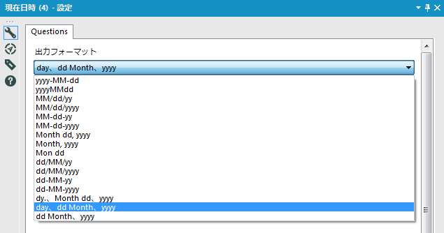 このツールでは設定は日時フォーマットの選択のみ可能となります。