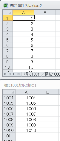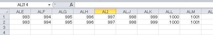 今度は、Excelで横に1001列あるファイルを作成してみました。