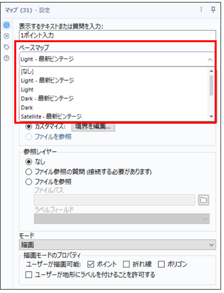 | ベースマップ | 背景マップレイヤーをベースマップから選択します。 |