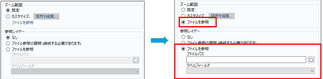 参照レイヤーオプションの中の「ファイル参照の質問、ファイルを参照」が選択された場合、使えるようになります。