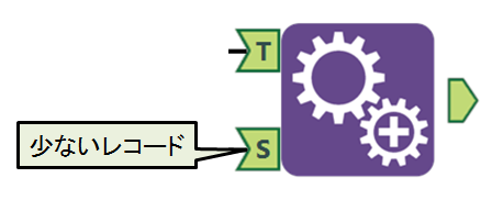 以下のようにワークフローを作成してみました。ワークフローを実行すると、「フィールド付加」ツールアイコンの「S」入力の各レコードが「T」入力のレコードと結合されることが分かります。