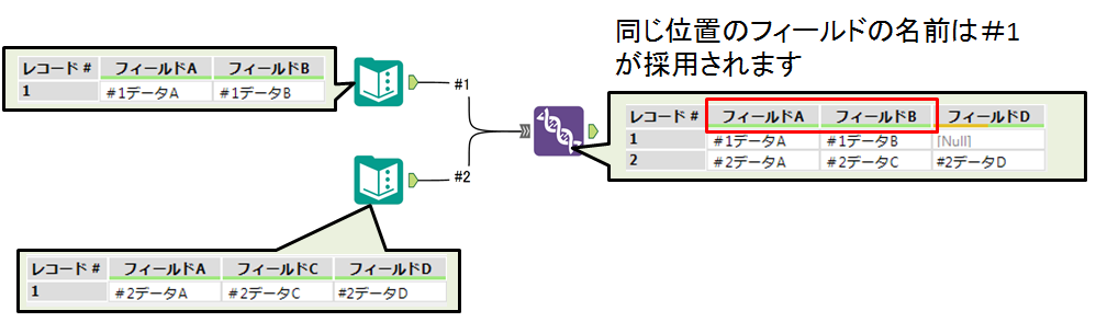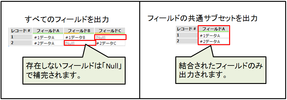 | フィールドの共通サブセットを出力 | 入力されたデータの共通するフィールドが出力されます。 |
