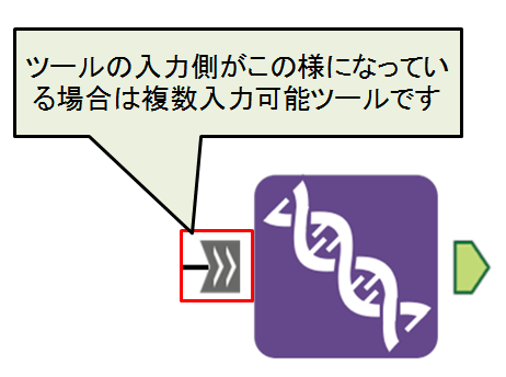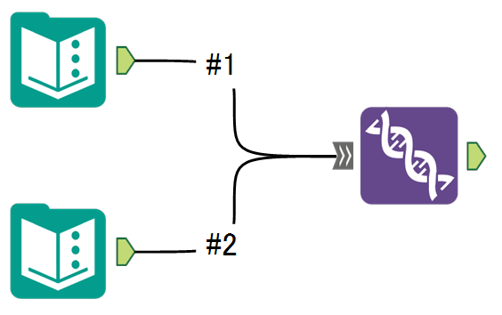 複数入力可能ツールの場合、入力データが「#1」などで表記されます。これはツールの入力に接続した順番で「#」と連番番号が付与され、ツール内でどのデータかを判断しています。またワークフロー上にも番号が表記されます。