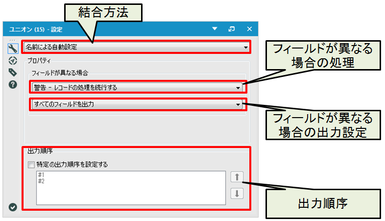 | 位置による自動設定 | フィールド位置が同じフィールドを結合します。 |