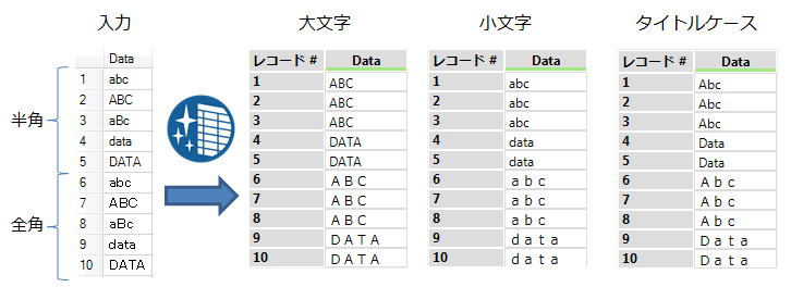 アルファベットの大文字、小文字を変換します。単語の最初だけ大文字にする「タイトルケース」という処理も可能です。なお、全角のアルファベットにも対応しています。