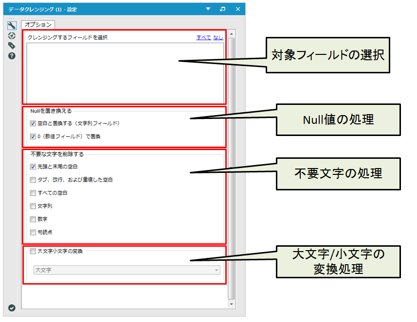 | 空白と置換する | 文字列フィールドの場合に、Null値を空白に置換します。 |