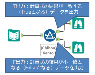 設定した条件の設定の結果に応じてT出力とF出力にデータが出力されます。