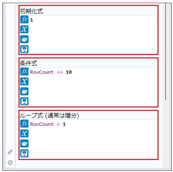 行生成ルールは「初期化式」「条件式」「ループ式(通常は増分)」の3つに分解されます。