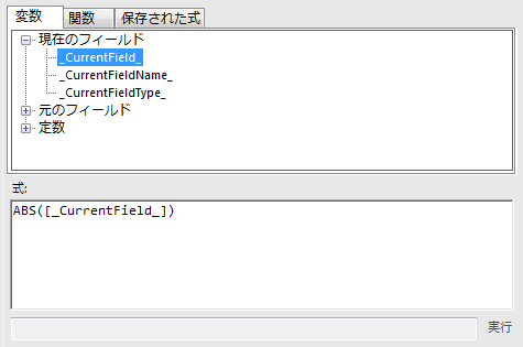 今回は、値の計算を行うので「_CurrentField_」を選択し、入力していた式「ABS(x)」の変数を表す「x」と置き換えます。