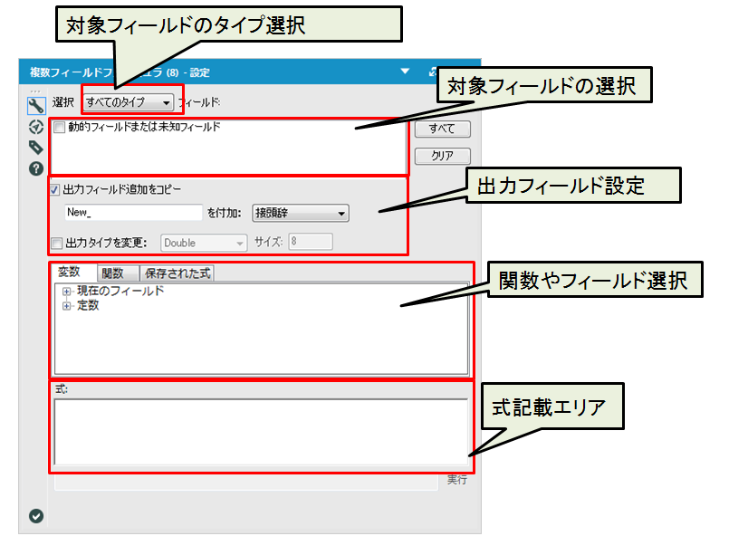 このツールは複数のフィールドに対して1つの式で計算を行うことができるツールです。タイプの変更も可能です。